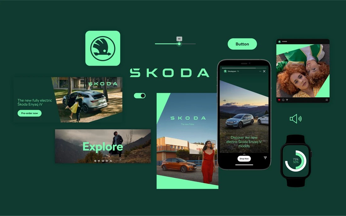 A new flexible word mark, the duality of two shades of green and a deeply human relationship with visual language all lift the brand identity to a new level – and bring Škoda close to the needs of present and future customers.